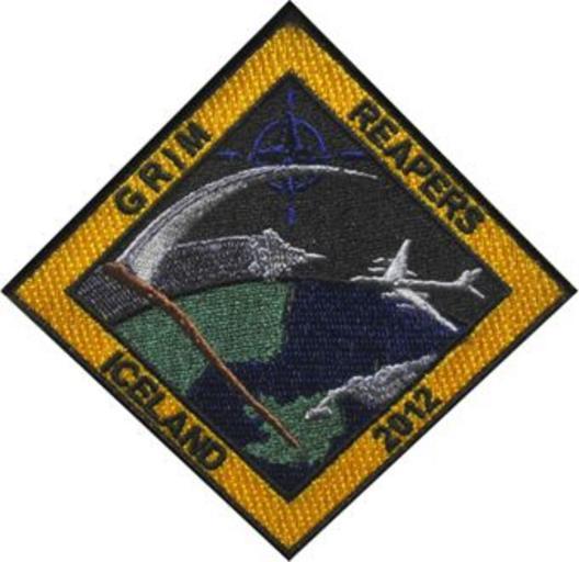 | Keywords: USAF Grim Reapers patch Iceland 2012.jpg en Patch representing the deployment of the USAF Grim Reapers to Iceland during 2012 2012-05-24 http //www usafe af mil/news/story asp id 123302906 United States Air Force PD-USGov Uploaded with UploadWizard NATO Icelandic air policing mission Death reaper |