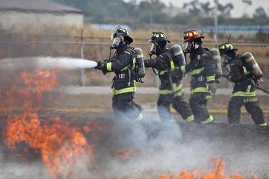 | Keywords: USAG-H-Firefighter2.jpg en U S Army Garrison Humphreys firefighters battle a simulated aviation blaze during joint live fire training conducted on Camp Humphreys South Korea Oct 23 2012-12-11 11 05 12 U S Army Garrison Humphreys Public Affairs Office Edward N Johnson PD-USGov Camp Humphreys Uploaded with UploadWizard Aviation fire training |