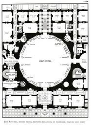 | Keywords: USCapitolBuildingRotundaDetail.jpg en Floor plan of the central area of the U S Capitol building around the Rotunda The caption to this image in the source book states The Rotunda second floor showing locations of paintings statues and busts North is to the left the Senate wing ; the upward direction is west toward the Mall; south is to the right the House of Representatives wing ; down is to the east toward the Visitors Center the Supreme Court building and the Library of Congress building Art of the United States Capitol page 426 The Rotunda second floor showing locations of paintings statues and busts Washington D C U S Government Printing Office 1978 Author A detail from this image showing just the Rotunda room itself File USCapitolBuildingRotunda jpg United States Capitol rotunda PD-USGov |