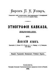 | Keywords: Uslar-Lak grammar cover.jpg en Cover of Peter Uslar's Lak Grammar 1890 ru Обложка книги П К Усла а Лакский язык 1890 Усла П К Этног афия Кавказа Языкознание IV Лакский язык Тифлис 1890 Author 1890 PD-old Petr Karlovich Uslar Title pages from Russia 1890 books Linguistics books Printed books Lak language Dagestan Books published in Tbilisi |