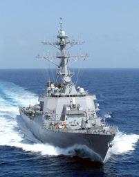 | Keywords: USN Arleigh Burke Class Destroyer.JPEG en At sea with the guided missile destroyer USS Cole DDG 67 Aug 9 2002 -- USS Cole steams off the coast of the Commonwealth of Puerto Rico conducting Combat System Ship Qualification Trials with Naval Sea Systems Command NAVSEA NAVSEA is verifying Cole's combat systems and providing realistic combat training scenarios Cole recently completed 14 months of shipboard repairs in Pascagoula Miss following an Oct 12 2000 terrorist attack that killed 17 Sailors in the port city of Aden Yemen U S Navy photo by Photographer s Mate 2nd Class James Elliott RELEASED 2002-08-09 020809-N-6641E-502 Navy http //www navy mil/view_image asp id 2260 U S Navy photo by Photographer s Mate 2nd Class James Elliott PD-USGov-Military-Navy August 2002 photographs 9 August General views of USS Cole DDG-67 Naval ships in motion |