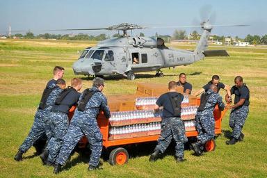 | Keywords: USN loads water onto SH-60F in Port-au-Prince 2010-01-18.jpg U S Navy sailors from the aircraft carrier USS Carl Vinson load water into an SH-60F Sea Hawk helicopter during humanitarian relief efforts in Port-au-Prince Haiti Jan 18 2010 The Carl Vinson and Carrier Air Wing 17 are conducting humanitarian and disaster relief operations as part of Operation Unified Response after a 7 0 magnitude earthquake caused severe damage near Port-au-Prince on Jan 12 2010 VIRIN 100118-N-4774B-207a http //www defense gov/PhotoEssays/PhotoEssaySS aspx ID 1540 2010-01-18 Petty Officer 2nd Class Daniel Barker USN PD-USGov-Military-Navy Files by User BrokenSphere Haiti 20100118 Operation Unified Response 20100118 SH-60F Oceanhawk 20100118 Bottled water 20100118 Unidentified beverage bottles Utility carts 2010 in Port-au-Prince |