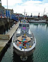 | Keywords: water waterfront outdoor boat vehicle USN P22 is a United States Navy Gun Boat which was built by a German shipbuilders shortly after WWII for the American military to patrol the river Rhine during the "Cold War" era. The gun boat is the only one afloat out of a fleet of 23 of this model. After being decommissioned by the American military, it was handed back to the reformed German Navy to continue Rhine patrol. After a number of years it was then decommissioned and bought by a Scottish-based private company where it fell into disrepair and partially sank, only to be saved by a private individual for its posterity and historic value. It was recently used in a forthcoming blockbuster war film in Dunkirk and is now permanently moored in Ramsgate, Kent where it is used for promotional events and nostalgic trips for veterans. USN P22 is a United States Navy Gun Boat which was built by a German shipbuilders shortly after WWII for the American military to patrol the river Rhine during the "Cold War" era. The gun boat is the only one afloat out of a fleet of 23 of this model. After being decommissioned by the American military, it was handed back to the reformed German Navy to continue Rhine patrol. After a number of years it was then decommissioned and bought by a Scottish-based private company where it fell into disrepair and partially sank, only to be saved by a private individual for its posterity and historic value. It was recently used in a forthcoming blockbuster war film in Dunkirk and is now permanently moored in Ramsgate, Kent where it is used for promotional events and nostalgic trips for veterans. |