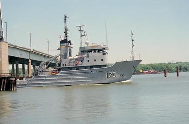 | Keywords: USNS Mohawk (T-ATF 170) passes Woodrow Wilson Memorial Bridge.jpg Port side bow view of the Military Sealift Command MSC fleet tug USNS MOHAWK T-ATF 170 passing out of the open draw of the Woodrow Wilson Memorial Bridge en route down river Location POTOMAC RIVER WASHINGTON DISTRICT OF COLUMBIA DC UNITED STATES OF AMERICA USA http //www dodmedia osd mil/Assets/2002/Navy/DN-SC-02-05606 JPEG DoDMedia 2000-05-25 DON S MONTGOMERY USN RET Information presented on DoD Imagery Server is considered public information except where noted for government and military users logged into restricted areas and may be distributed or copied Use of appropriate byline/photo/image credits is requested PD-USGov-Military-Navy 170 Mohawk tugboat 1980 Mohawk Woodrow Wilson Bridge 1961 |