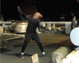 | Keywords: USNS Safeguard sailor conducts CrossFit exercises at sea 111121-N-ZE676-011.jpg en Navy Diver 2nd Class Taylor Nevius drives a sledgehammer into a bumper while performing a CrossFit Exercise aboard USNS Safeguard T-ARS 50 The ship is currently in Onagawa after city representatives invited the salvage ship for a visit While in port Safeguard's crew will assist in community service projects and conduct shipboard tours for local school children Onagawa was devastated by the Great East Japan Earthquake March 11 which triggered a massive tsunami that swept through the area Safeguard is the first U S Navy ship to visit the area since Operation Tomodachi concluded U S Navy photo by Chief Mass Communication Specialist David Crawford/Released 2010-11-21 David Crawford https //www dvidshub net/image/489884 111121-N-ZE676-011 2011-11-21 07 10 ONAGAWA AICHI JP PD-USGov-Military-Navy USNS Safeguard T-ARS-50 Images from DoD uploaded by Fæ |