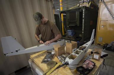 | Keywords: USNS Spearhead 150110-N-JP249-031.jpg en Intelligence Specialist 2nd Class Joshua Lesperance conducts maintenance on an RQ-20A Aqua Puma small unmanned aircraft system in the mission bay aboard the Military Sealift Command ™s joint high-speed vessel USNS Spearhead JHSV 1 Jan 10 2015 Spearhead is on a scheduled deployment to the U S 6th Fleet area of operations to support the international collaborative capacity-building program Africa Partnership Station U S Navy photo by Mass Communication Specialist 2nd Class Kenan O ™Connor/Released 2015-01-10 Petty Officer 2nd Class Kenan O'Connor https //www dvidshub net/image/1722734 150110-N-JP249-031 2015-01-13 17 31 AT SEA PD-USGov-Military-Navy USNS Spearhead JHSV-1 Images from DoD uploaded by Fæ |