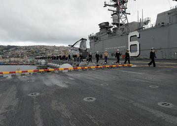 | Keywords: USS America arrives in Valparaiso 140824-N-FR671-049.jpg en Sailors and Marines aboard future amphibious assault ship USS America LHA 6 prepare to man the rails as the ship gets ready to moor in Valparaiso Chile for a scheduled port visit America is currently traveling through the U S Southern Command and U S 4th Fleet area of responsibility on her maiden transit America visits the Americas America is the first ship of its class replacing the Tarawa-class of amphibious assault ships As the next generation big-deck amphibious assault ship America is optimized for aviation capable of supporting current and future aircraft such as the MV-22 Osprey and F-35B Joint Strike Fighter The ship is scheduled to be ceremoniously commissioned Oct 11 in San Francisco U S Navy photo by Mass Communication Specialist 2nd Class Jonathan A Colon/Released 2014-08-24 Jonathan Colon https //www dvidshub net/image/1521706 140824-N-FR671-049 2014-08-25 17 27 VALPARAISO CL PD-USGov-Military-Navy MV-22B Osprey USS America LHA-6 Images from DoD uploaded by Fæ |