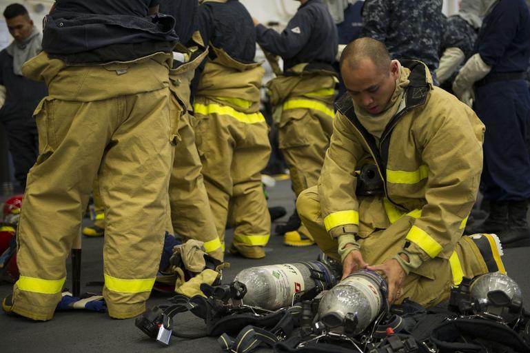 | Keywords: USS America general quarters drill 141023-N-MZ309-056.jpg en Aviation Support Equipment Technician 1st Class Joseph Diaz assigned to amphibious assault ship USS America LHA 6 inspects a self-contained breathing apparatus during a general quarters drill aboard amphibious assault ship USS America LHA 6 The crew practices various drills to improve proficiency ensuring they are ready for any emergency America was recently commissioned during San Francisco Fleet Week 2014 and is the first ship of its class and the fourth to bear the name It replaces the Tarawa-class of amphibious assault ship as the next generation big-deck amphibious assault ship and is optimized for aviation and capable of supporting current and future aircraft such as the MV-22 Osprey and F-35B Joint Strike Fighter U S Navy photo by Mass Communication Specialist 2nd Class Ryan Riley/Released 2014-10-23 Ryan Riley https //www dvidshub net/image/1627649 141023-N-MZ309-056 2014-10-24 13 29 SAN DIEGO CA US PD-USGov-Military-Navy MV-22B Osprey USS America LHA-6 Images from DoD uploaded by Fæ |