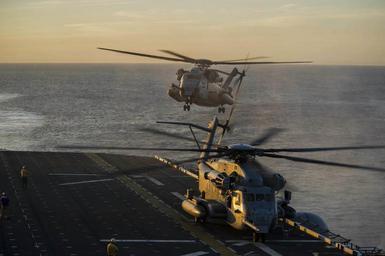 | Keywords: USS America operations 141003-N-MD297-088.jpg en CH-53E Sea Stallions assigned to the Warhorses of Marine Heavy Helicopter Squadron HMH 465 land on the flight deck of future amphibious assault ship USS America LHA 6 during flight operations America is the first ship of its class replacing the Tarawa-class of amphibious assault ships As the next generation big-deck amphibious assault ship America is optimized for aviation capable of supporting current and future aircraft such as the MV-22 Osprey and F-35B Joint Strike Fighter The ship is scheduled to be ceremoniously commissioned Oct 11 in San Francisco U S Navy photo by Mass Communication Specialist 3rd Class Huey D Younger Jr /Released 2014-10-03 Petty Officer 3rd Class Huey Younger https //www dvidshub net/image/1597120 141003-N-MD297-088 2014-10-04 07 44 AT SEA PD-USGov-Military-Navy MV-22B Osprey USS America LHA-6 Images from DoD uploaded by Fæ |