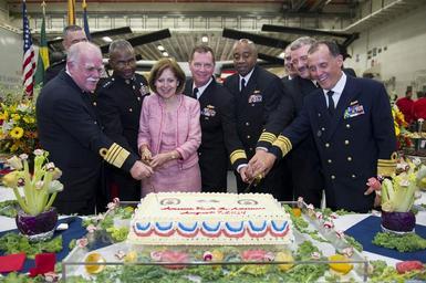 | Keywords: USS America reception 140807-N-EV723-201.jpg en U S Ambassador to Brazil Liliana Ayalde center and the official party consisting of senior Brazilian and U S military leadership cut a ceremonial cake during a reception in the hangar bay of the future amphibious assault ship USS America LHA 6 America is currently traveling through the U S Southern Command and U S 4th Fleet area of responsibility on her maiden transit America visits the Americas America is the first ship of its class replacing the Tarawa-class of amphibious assault ships As the next generation big-deck amphibious assault ship America is optimized for aviation capable of supporting current and future aircraft such as the MV-22 Osprey and F-35B Joint Strike Fighter The ship is scheduled to be ceremoniously commissioned Oct 11 in San Francisco U S Navy photo by Mass Communication Specialist 1st Class Jason M Graham/Released 2014-08-07 Petty Officer 1st Class Jason Graham https //www dvidshub net/image/1497623 140807-N-EV723-201 2014-08-12 01 56 RIO DE JANEIRO BR PD-USGov-Military-Navy MV-22B Osprey Aboard USS America LHA-6 Images from DoD uploaded by Fæ |