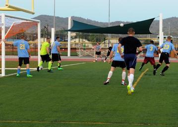 | Keywords: USS America soccer match 140721-N-CC789-061.jpg en Sailors and Marines assigned to future amphibious assault ship USS America participate in a soccer game with the base team at Naval Station Guantanamo Bay Cuba America is currently traveling through the U S Southern Command and U S 4th Fleet area of responsibility on her maiden transit America Visits the Americas America is the first ship of its class replacing the Tarawa-class of amphibious assault ships As the next generation big-deck amphibious assault ship America is optimized for aviation capable of supporting current and future aircraft such as the MV-22 Osprey and F-35B Joint Strike Fighter The ship is scheduled to be ceremoniously commissioned Oct 11 in San Francisco 2014-07-21 LHA 6 https //www dvidshub net/image/1461754 140721-N-CC789-061 2014-07-23 23 59 GUANTANAMO BAY CU PD-USGov-Military-Navy Naval Station Guantanamo Bay MV-22B Osprey Images from DoD uploaded by Fæ |