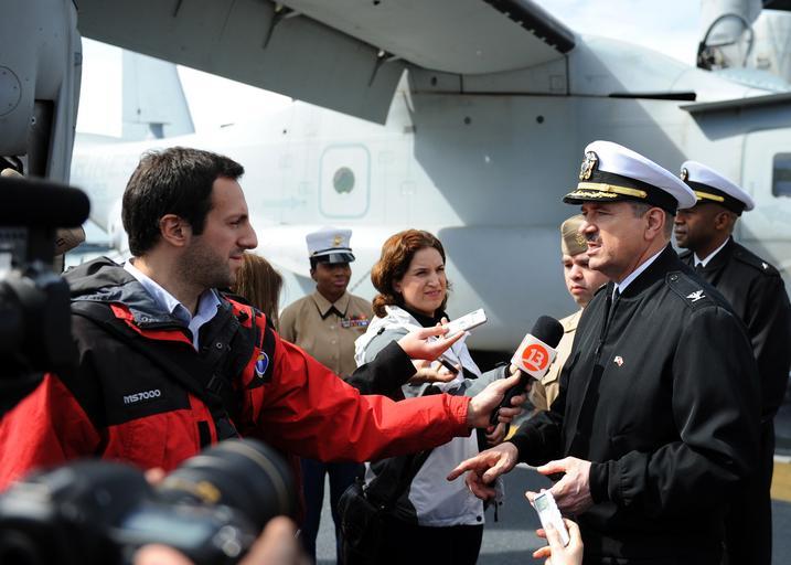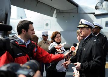| Keywords: USS America tour 140824-N-CC789-108.jpg en Capt Robert A Hall Jr commanding officer of future amphibious assault ship USS America LHA 6 addresses the media during a press conference on the flight shortly after the ship moored in Valparaiso Chile for a scheduled port visit America is currently traveling through the U S Southern Command and U S 4th Fleet area of responsibility on her maiden transit America visits the Americas America is the first ship of its class replacing the Tarawa-class of amphibious assault ships As the next generation big-deck amphibious assault ship America is optimized for aviation capable of supporting current and future aircraft such as the MV-22 Osprey and F-35B Joint Strike Fighter The ship is scheduled to be ceremoniously commissioned Oct 11 in San Francisco U S Navy photo by Mass Communication Specialist 1st Class Vladimir Ramos/Released 2014-08-24 Canadian Forces PO 1 VLADIMIR RAMOS https //www dvidshub net/image/1522071 140824-N-CC789-108 2014-08-26 02 19 VALPARAISO CL PD-USGov-Military-Navy MV-22B Osprey USS America LHA-6 Images from DoD uploaded by Fæ |
