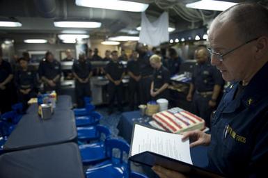 | Keywords: USS Arleigh Burke 140526-N-WD757-092.jpg en Canadian army Maj Bastien Leclerc right a chaplain leads a prayer during a Memorial Day remembrance ceremony May 26 2014 aboard the guided missile destroyer USS Arleigh Burke DDG 51 in the Persian Gulf The Arleigh Burke deployed in the U S 5th Fleet area of responsibility to support maritime security operations and theater security cooperation efforts U S Navy photo by Mass Communication Specialist 2nd Class Carlos M Vazquez II/Released Unit Defense Imagery Management Operations Center DVIDS Tags U S flag; DIMOC; USN; DVIDS Bulk Import 2014-05-26 Petty Officer 3rd Class Carlos Vazquez II https //www dvidshub net/image/1381785/uss-arleigh-burke 140526-N-WD757-092 2014-06-06 01 32 USS ARLEIGH BURKE DDG 51 AT SEA PD-USGov-Military-Navy USS Arleigh Burke DDG-51 Images from DoD uploaded by Fæ |