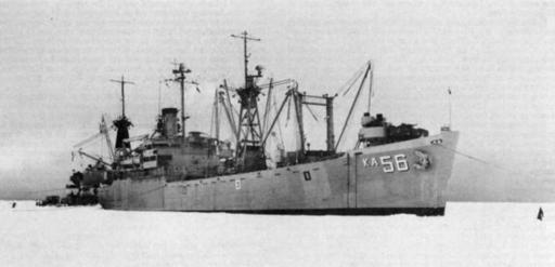 | Keywords: USS Arneb (AKA-56) at Little America station in 1959.jpg The U S Navy attack cargo ship USS Arneb AKA-56 unloads stores and equipment at Little America V station at Kainan Bay 16 December 1959 The prominent numbers on the hull sides odd on the starboard side even on the port denote debarkation stations Starboard side stations are a white 1 on a red background a black 3 on a white background a white 5 on a blue background a black 7 on a yellow background and not visible a white 9 on a green background Official U S Navy photo http //www history navy mil/danfs/photos/arneb jpg USN 1046469 from http //www history navy mil/danfs/a12/arneb htm ship's entry in the U S Navy http //www history navy mil/DANFS/ Dictionary of American Naval Fighting Ships DANFS available at the http //www history navy mil Naval History and Heritage Command 1959-12-16 USN PD-USGov-Military-Navy see at this http //www history navy mil/branches/org11-2 htm site all Pictures in the Online Library of Naval Historical Center are public domain USS Arneb AKA-56 Operation Deep Freeze 1959 in Antarctica |