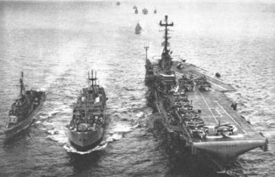 | Keywords: USS Bennington (CVS-20) underway with escorts 1962.jpg The Royal Fleet Auxiliary RFA Fort Dunvegan A160 replenishes the U S Navy aircraft carrier USS Bennington CVS-20 and the destroyer USS Epperson DD-719 during the SEATO ASW exercise Sea Devil in the Coral Sea in 1962 The Bennington with assigned Carrier Anti-submarine Air Group 59 CVSG-59 was deployed to the Western Pacific from 7 January to 25 July 1962 http //navalaviationnews navylive dodlive mil/ U S Navy Naval Aviation News/http //www history navy mil/nan/backissues/newbackissues htm http //www history navy mil/nan/backissues/1960s/1962/Jul62 pdf July 1962 p 14 1962 USN PD-USGov-Military-Navy USS Bennington CV-20 USS Epperson DD-719 Royal Fleet Auxiliary ships 1960s military exercises |