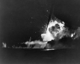 | Keywords: USS Bismarck Sea (CVE-95) explodes after being hit by a Kamikaze off Iwo Jima, February 1945.jpg USS Bismarck Sea CVE-95 Large explosion on board the ship after she was hit by a Kamikaze during the night of 21-22 February 1945 while she was taking part in the Iwo Jima operation She sank as a result of her damage Photographed from USS Saginaw Bay CVE-82 http //www history navy mil/photos/images/g330000/g335103c htm Naval Historical Center 21-22 February 1945 US Navy Employee PD-USGov-Military-Navy USS Bismarck Sea CVE-95 Kamikaze Battle of Iwo Jima Ships at night Burning ships Explosions |