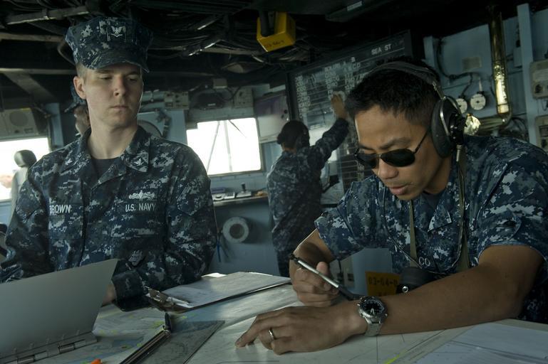 Keywords: USS Blue Ridge 120524-N-CP762-194.jpg en Quartermaster 3rd Class Ian Francisco right plots a course at the navigation table in the pilothouse aboard the U S 7th Fleet flag ship USS Blue Ridge as the ship arrives in Laem Chabang Thailand The port visit represents an opportunity for the crew to serve as goodwill ambassadors from the U S promoting peace and stability in the Southeast Asia region and to demonstrate commitment to regional partnerships and foster growing relationships 2012-05-24 LCC 19 https //www dvidshub net/image/587589 120524-N-CP762-194 2012-05-25 02 32 LAEM CHABANG TH PD-USGov-Military-Navy USS Blue Ridge LCC-19 Images from DoD uploaded by Fæ |