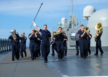 | Keywords: USS Blue Ridge 150429-N-OK605-016.jpg en 150429-N-OK605-016 SOUTH CHINA SEA - Drum Major Musician 2nd Class Timothy Deal embarked on the U S 7th Fleet flagship USS Blue Ridge leads the U S 7th Fleet Parade Band during a marching routine on the main deck Blue Ridge is conducting patrols strengthening and fostering relationships within the Indo-Asia Pacific region 2015-04-28 April 29 2015 https //www dvidshub net/image/1904470 150429-N-OK605-016 2015-04-29 09 21 SOUTH CHINA SEA PD-USGov-Military-Navy USS Blue Ridge LCC-19 Images from DoD uploaded by Fæ |