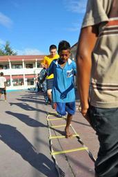 | Keywords: USS Blue Ridge operations 130626-N-NN332-120.jpg en Personnel Specialist 2nd Class William Baldwin participates in agility drills with children from Timor-Leste Kid's Tennis while U S 7th Fleet flagship USS Blue Ridge visits Dili Democratic Republic of TImor-Leste Blue Ridge port visits represent an opportunity to promote peace and stability in the South Indo-Asia-Pacific region demonstrate commitment to regional partners and foster growing relationships 2013-06-26 LCC 19 https //www dvidshub net/image/961830 130626-N-NN332-120 2013-06-27 03 41 USS BLUE RIDGE LCC 19 TL PD-USGov-Military-Navy USS Blue Ridge LCC-19 Images from DoD uploaded by Fæ |