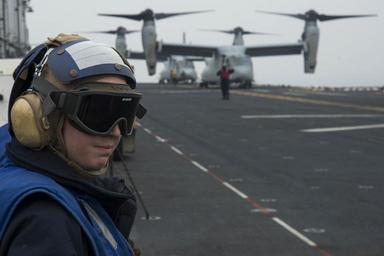| Keywords: USS Bonhomme Richard flight deck operations 150331-N-RU971-026.jpg en 150331-N-RU971-026 WATERS TO THE EAST OF THE KOREAN PENINSULA Airman Aubrie Scobey from Gardner Kan observes flight deck operations aboard the forward-deployed amphibious assault ship USS Bonhomme Richard U S Sailors and Marines from the Bonhomme Richard Amphibious Ready Group and the 31st Marine Expeditionary Unit are participating in the Korean Marine Exchange Program in the Republic of Korea with the ROK marine corps and navy The Bonhomme Richard ARG is comprised of the amphibious assault ship USS Bonhomme Richard the amphibious transport dock ship USS Green Bay the Whidbey-island class amphibious dock landing ship USS Ashland and the embarked 31st MEU 2015-03-31 March 31 2015 https //www dvidshub net/image/1847963 150331-N-RU971-026 2015-03-31 07 58 USS BONHOMME RICHARD WATERS TO THE EAST OF THE KOREAN PENINSULA AT SEA PD-USGov-Military-Navy 31st Marine Expeditionary Unit USS Bonhomme Richard LHD-6 USS Green Bay LPD-20 Images from DoD uploaded by FĂŚ |