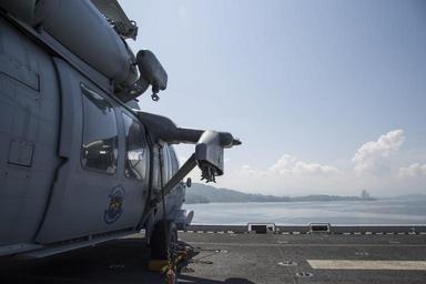 | Keywords: USS Bonhomme Richard, Malaysian port visit 150223-N-GG858-059.jpg en 150223-N-GG858-059 KOTA KINABALU MALAYSIA Feb 23 2015 The forward-deployed amphibious assault ship USS Bonhomme Richard LHD 6 pulls into Kota Kinabalu Malaysia for a scheduled port visit Bonhomme Richard is the lead ship of the Bonhomme Richard Amphibious Ready Group comprised of USS Ashland LSD 48 USS Germantown LSD 42 and the newest member USS Green Bay LPD 20 The purpose of the port call in Malaysia is to continue to build key diplomatic and military relationships and to illustrate the U S Navy's commitment to broadening the robust ties with their regional Asia-Pacific partners During Bonhomme Richard's visit the crew will engage in community relations events and sports activities and will host tours of the ship for the local residents U S Navy photo by Mass communication Specialist 2nd Class Matthew Dickinson/ Released 2015-02-23 Petty Officer 2nd Class Matthew Dickinson https //www dvidshub net/image/1781382 150223-N-GG858-059 2015-02-23 02 13 USS BONHOMME RICHARD KOTA KINABALU MY PD-USGov-Military-Navy USS Ashland LSD-48 USS Bonhomme Richard LHD-6 USS Germantown LSD-42 USS Green Bay LPD-20 Images from DoD uploaded by FĂŚ |