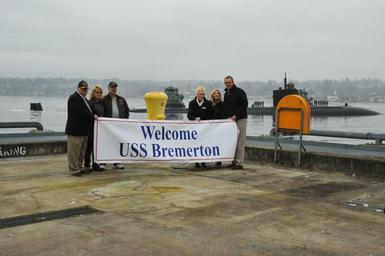 | Keywords: USS Bremerton returns for namesake visit 150225-N-EC099-084.jpg en 150225-N-EC099-084 BREMERTON Wash Feb 25 2015 Members of the Bremerton-Olympic Peninsula Navy League welcome the Los Angeles-class fast-attack submarine USS Bremerton SSN 698 as it makes its way to Pier Delta at Naval Base Kitsap-Bremerton prior to mooring USS Bremerton is making a namesake visit to Bremerton Wash for the first time since 2012 U S Navy photo by Mass Communication Specialist 3rd Class Charles D Gaddis IV/Released 2015-02-25 Petty Officer 3rd Class Charles Gaddis IV https //www dvidshub net/image/1786254 150225-N-EC099-084 2015-02-25 16 24 BREMERTON WA US PD-USGov-Military-Navy Naval Base Kitsap Images from DoD uploaded by FĂŚ |