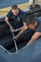 | Keywords: USS Carl Vinson sailors conduct maintenance 140905-N-TP834-937.jpg en Aviation Boatswain ™s Mate Equipment 3rd Class Ronnie Smith from Denison Texas left and Aviation Boatswain ™s Mate Equipment 2nd Class Juan Londono from San Diego torque bolts on an catapult water brake on the flight deck of aircraft carrier USS Carl Vinson CVN 70 Carl Vinson is underway in the U S 3rd Fleet area of responsibility U S Navy photo by Mass Communication Specialist 2nd Class John Philip Wagner Jr /Released 2014-09-05 Petty Officer 2nd Class john wagner https //www dvidshub net/image/1538337 140905-N-TP834-937 2014-09-08 06 38 PACIFIC OCEAN USPACOM AT SEA PD-USGov-Military-Navy USS Carl Vinson CVN-70 Images from DoD uploaded by Fæ |