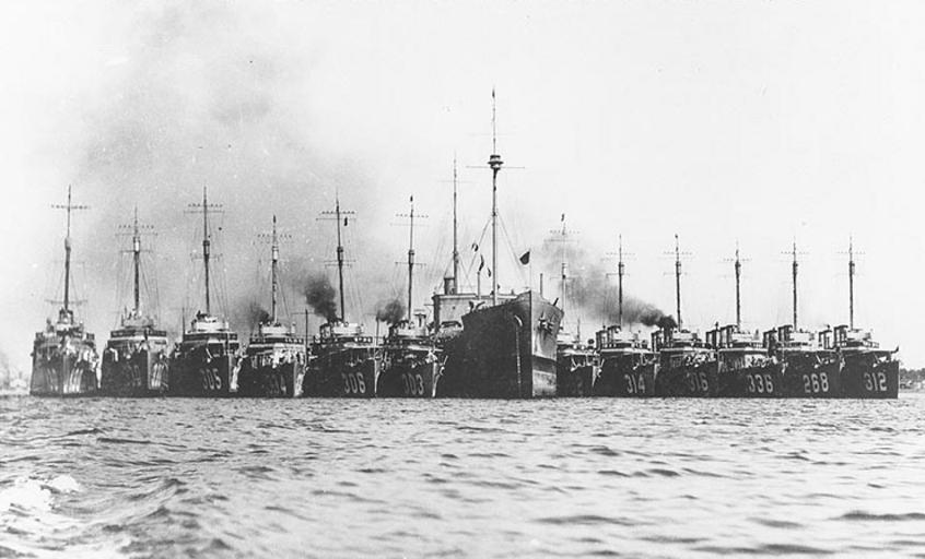 Keywords: USS Cuyama (AO-3) with 12 destroyers in the early 1920s.jpg The U S Navy fleet oiler USS Cuyama AO-3 with twelve destroyers tied up alongside during the early 1920s The ships present include from left to right <br> USS Jacob Jones DD-130 ;<br> USS Hull DD-330 ;<br> USS Thompson DD-305 ;<br> USS Corry DD-334 ;<br> USS Kennedy DD-306 ;<br> USS Reno DD-303 ;<br> USS Cuyama AO-3 ;<br> USS Stoddert DD-302 ;<br> USS Yarborough DD-314 ;<br> USS Sloat DD-316 ;<br> USS Litchfield DD-336 ;<br> USS Shubrick DD-268 ;<br> USS Young DD-312 ; Official U S Navy photo http //www history navy mil/photos/images/h77000/h77258c htm NH 77258 from the U S Navy http //www history navy mil Naval History and Heritage Command s 1920 USN PD-USGov-Military-Navy USS Cuyama AO-3 ship 1916 USS Jacob Jones DD-130 USS Shubrick DD-268 USS Stoddert DD-302 USS Reno DD-303 USS Thompson DD-305 USS Kennedy DD-306 USS Young DD-312 USS Yarborough DD-314 USS Sloat DD-316 USS Hull DD-330 USS Corry DD-334 USS Litchfield DD-336 |