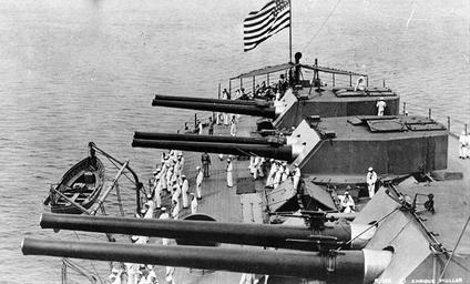 | Keywords: USS Delaware Mark 5s.jpg After three gun turrets aboard USS Delaware displaying six 12 /45 caliber Mark 5 guns Note the sub-caliber spotting rifles mounted on top of each gun to reduce barrel-wear during practice shooting U S Naval Historical Center photograph NH 54666 <br>Originally uploaded to EN Wikipedia as en File USS Delaware Mark 5s jpg by en User Jrt989 21 February 2009 ca 1913 Creator Robert Enrique Muller Copyright has expired PD-old-90 en File USS Delaware Mark 5s jpg USS Delaware BB-28 12 /45 caliber gun Photographs by Enrique Muller |