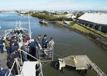 | Keywords: USS Denver arrives in Brisbane, Australia. (9418039288).jpg BRISBANE Australia July 29 2013 Sailors assigned to the amphibious transport dock ship USS Denver LPD 9 and embarked Royal Australian Navy sailors watch as a mooring line is thrown to the pier during a scheduled port call to Brisbane Australia Denver is on patrol with the Bonhomme Richard Amphibious Ready Group and with the embarked 31st Marine Expeditionary Group 31st MEU is conducting routine joint-force operations in the U S 7th Fleet area of responsibility U S Navy photo by Mass Communication Specialist 1st Class Joshua Hammond/Released 130729-N-NZ935-032 Join the conversation http //www navy mil/viewGallery asp www navy mil/viewGallery asp http //www facebook com/USNavy www facebook com/USNavy http //www twitter com/USNavy www twitter com/USNavy http //navylive dodlive mil navylive dodlive mil http //pinterest com pinterest com https //plus google com plus google com http //www flickr com/photos/usnavy/9418039288/ USS Denver arrives in Brisbane Australia 2013-07-29 09 25 http //www flickr com/people/56594044 N06 Official U S Navy Page from United States of America MC1 Joshua Hammond/U S Navy U S Navy Photo PD-USGov-Military-Navy Official U S Navy Imagery http //flickr com/photos/56594044 N06/9418039288 2014-04-03 13 17 57 cc-by-2 0 Files uploaded by Russavia Files uploaded by Russavia Aboard USS Denver LPD-9 Mooring Ships in Brisbane 2013 in Brisbane |