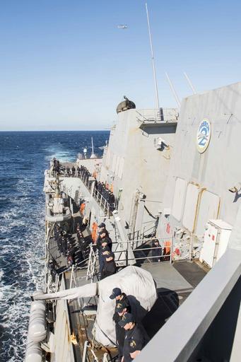 | Keywords: USS Farragut Renders Honors 150325-N-VC236-041.jpg en 150325-N-VC236-041 ATLANTIC OCEAN - Sailors assigned to the Arleigh Burke-class guided-missile destroyer USS Farragut stand at attention while passing the Portuguese Navy Vasco Da Gama-class guided-missile frigate NRP Alvares Cabral March 25 2015 Farragut homeported in Mayport Florida is conducting naval operations in the U S 6th Fleet area of operations in support of U S national security interests in Europe 2015-03-25 March 25 2015 https //www dvidshub net/image/1846496 150325-N-VC236-041 2015-03-31 00 00 ATLANTIC OCEAN 3 PD-USGov-Military-Navy USS Farragut DDG-99 Images from DoD uploaded by Fæ |