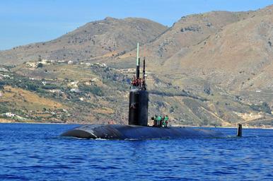 | Keywords: USS Florida visits Greece 120613-N-MO201-067.jpg en The Los Angeles-class attack submarine USS Annapolis SSN 760 gets underway from Souda harbor following a port visit Annapolis is homeported in Groton Conn and is currently on a scheduled deployment in the U S 6th Fleet area of responsibility U S Navy photo by Paul Farley/Released 2012-06-13 D L Paul Farley https //www dvidshub net/image/665962 120613-N-MO201-067 2012-09-17 05 02 SOUDA BAY GR PD-USGov-Military-Navy USS Annapolis SSN-760 Images from DoD uploaded by Fæ |