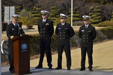 | Keywords: USS Frank Cable action 150316-N-EV320-025.jpg en BUSAN Republic of Korea - Capt Mark Benjamin left commanding officer of the submarine tender USS Frank Cable Delivers a few words about the sacrifices made by United Nations Command service members during the Korean War at a memorial ceremony dedicated to those who lost their lives in the Korean War at the United Nations Memorial Cemetery Korea in Busan Republic of Korea March 16 The memorial cemetery contains 2 300 graves of the United Nations Command service members who died in the Korean War Frank Cable is in Busan for a port visit that has included various community service events and military to military engagements designed to strengthen partnership with the Republic of Korea navy Frank Cable forward deployed to the island of Guam conducts maintenance and support of submarines and surface vessels deployed to the U S 7th Fleet area of responsibility and is currently on a scheduled underway period 2015-03-16 March 16 2015 https //www dvidshub net/image/1824891 150316-N-EV320-025 2015-03-20 00 01 26 KR PD-USGov-Military-Navy USS Frank Cable AS-40 Images from DoD uploaded by Fæ United Nations Memorial Cemetery |