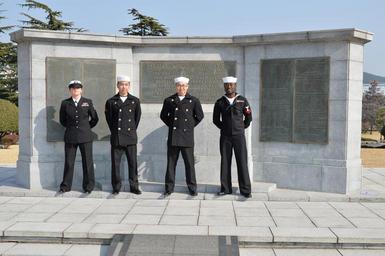 | Keywords: USS Frank Cable action 150316-N-EV320-045.jpg en BUSAN Republic of Korea - Sailors assigned to the submarine tender USS Frank Cable and sailors from the Republic of Korea navy stand at parade rest at a monument in the United Nations Memorial Cemetery Korea in Busan Republic of Korea March 16 The memorial cemetery contains 2 300 graves of the United Nations Command service members who died in the Korean War Frank Cable is in Busan for a port visit that has included various community service events and military to military engagements designed to strengthen partnership with the Republic of Korea navy Frank Cable forward deployed to the island of Guam conducts maintenance and support of submarines and surface vessels deployed to the U S 7th Fleet area of responsibility and is currently on a scheduled underway period 2015-03-16 March 16 2015 https //www dvidshub net/image/1824768 150316-N-EV320-045 2015-03-20 00 01 BUSAN KR PD-USGov-Military-Navy USS Frank Cable AS-40 Images from DoD uploaded by Fæ 2015 in Busan Images from US Navy location BUSAN Korea |