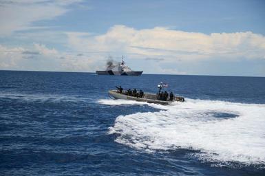 | Keywords: USS Freedom activity 130907-N-JN664-112.jpg en Members of the visit board search and seizure team from the littoral combat ship USS Freedom LCS 1 prepare to board a Brunei Navy ship during a compliant boarding exercise as part of Southeast Asia Cooperation and Training SEACAT This is the 11th annual SEACAT exercise with navy liaison officers from Brunei Indonesia Malaysia the Philippines Singapore Thailand and the United States tracking vessels of interest in the multilateral maritime interdiction scenario U S Navy photo by Mass Communication Specialist 3rd Class Karolina A Oseguera/Released 2013-09-07 Seaman Apprentice Karolina Oseguera https //www dvidshub net/image/1014856 130907-N-JN664-112 2013-09-10 23 24 SOUTH CHINA SEA PD-USGov-Military-Navy USS Freedom LCS-1 Images from DoD uploaded by Fæ |