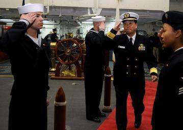 | Keywords: USS George Washington 120327-N-ZT599-025.jpg en Sailors render honors to Rear Adm Shinichi Tokumaru chief of Staff of the Japan Maritime Self-Defense Force Fleet Escort Force as he comes aboard the aircraft carrier USS George Washington Tokumaru visited George Washington to meet with Rear Adm J R Haley commander of Battle Force 7th Fleet George Washington returned to her forward-operating port of Commander Fleet Activities Yokosuka after navigating more than 50 000 nautical miles across the western Pacific to operate with more than a dozen different nations during her nine-week patrol George Washington is the Navy's only full-time forward-deployed aircraft carrier ensuring security and stability in the western Pacific Ocean 2012-03-27 U S Navy photo by Mass Communication Specialist Seaman Apprentice Brian H Abel https //www dvidshub net/image/550461 120327-N-ZT599-025 2012-03-29 06 52 USS GEORGE WASHINGTON CVN 73 AT SEA PD-USGov-Military-Navy Fleet Activities Yokosuka USS George Washington CVN-73 Images from DoD uploaded by Fæ Shinichi Tokumaru |