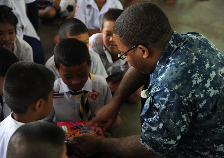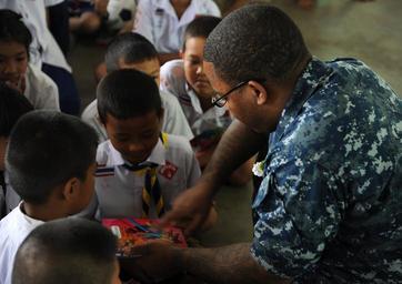 Keywords: USS Germantown builds relationship with Thai School 120223-N-LP801-036.jpg en Hull Maintenance Technician 3rd Class Adrine Thomas assigned to the forward-deployed amphibious dock landing ship USS Germantown teaches colors in English to Thai children while participating in a community service project during a port visit to the Kingdom of Thailand Germantown with embarked elements of the 31st Marine Expeditionary Unit is currently underway after participating in exercise Cobra Gold 2012 an annual Thai-U S co-sponsored joint and multinational exercise designed to advance security throughout the Asia-Pacific region and enhance interoperability with participating nations U S Navy photo by Mass Communication Specialist Seaman Raul Moreno Jr 2012-02-23 Seaman Raul Moreno Jr https //www dvidshub net/image/531241 120223-N-LP801-036 2012-02-25 08 03 TH PD-USGov-Military-Navy 31st Marine Expeditionary Unit Images from DoD uploaded by Fæ |