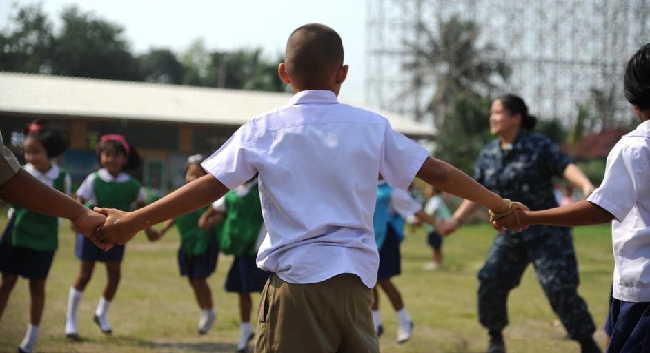 Keywords: USS Germantown Builds Relationship with Thai School 120223-N-LP801-161.jpg en LAEM CHABANG Kingdom of Thailand Feb 23 2012 Engineman 3rd Class Ia Vang assigned to the forward-deployed amphibious dock landing ship USS Germantown LSD 42 holds hands with Thai children while participating in a community service project during a port visit to the Kingdom of Thailand Germantown with embarked elements of the 31st Marine Expeditionary Unit is currently underway after participating in exercise Cobra Gold 2012 an annual Thai-U S co-sponsored joint and multinational exercise designed to advance security throughout the Asia-Pacific region and enhance interoperability with participating nations U S Navy photo by Mass Communication Specialist Seaman Raul Moreno Jr /Released 2012-02-23 Seaman Raul Moreno Jr https //www dvidshub net/image/531244 120223-N-LP801-161 2012-02-25 08 10 TH PD-USGov-Military-Navy 31st Marine Expeditionary Unit USS Germantown LSD-42 Images from DoD uploaded by Fæ |