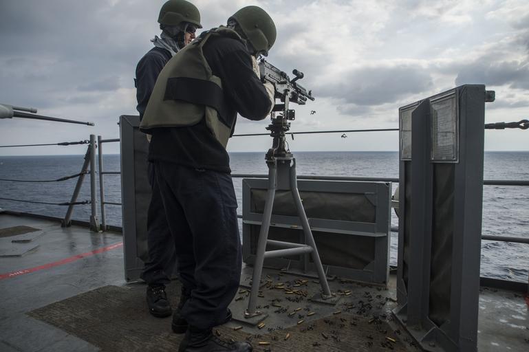 | Keywords: USS Germantown crew-served weapons qualification shoot 141024-N-XM324-330.jpg en Gunner ™s Mate 2nd Class Andrew Mattson left from Snowflake Ariz supervises as Operations Specialist Seaman Adrian Lopez from Dallas fires an M240B machine gun during a live-fire exercise aboard the amphibious dock landing ship USS Germantown LSD 42 Germantown is part of the Peleliu Amphibious Ready Group PELARG14 commanded by Capt Heidi Agle and is conducting joint forces exercises in the U S 7th Fleet area of responsibility U S Navy photo by Mass Communication Specialist Seaman Patrick Dionne/Released 2014-10-24 Seaman Apprentice Patrick Dionne https //www dvidshub net/image/1628851 141024-N-XM324-330 2014-10-25 12 21 USS GERMANTOWN AT SEA PD-USGov-Military-Navy USS Germantown LSD-42 M-240 machine gun Images from DoD uploaded by Fæ |