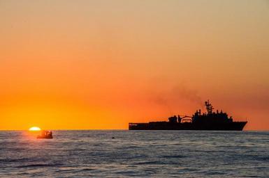 | Keywords: USS Germantown (LSD-42) at Coral Sea sunset 2013.JPG en U S Navy sailors assigned to Explosive Ordnance Disposal Mobile Unit EODMU 5 embarked aboard the dock landing ship USS Germantown LSD-42 recover jettisoned ordnance in the Great Barrier Reef Marine Park area Germantown was part of the Bonhomme Richard Amphibious Ready Group and with the embarked 31st Marine Expeditionary Unit 31st MEU was conducting routine joint-force operations in the U S 7th Fleet area of responsibility 2013-08-28 130828-N-UE577-669 Navy http //www navy mil/view_image asp id 160805 U S Navy photo by Mass Communication Specialist 2nd Class Andrew B Church PD-USGov-Military-Navy USS Germantown LSD-42 Sunsets taken out at sea Boats at sunset |