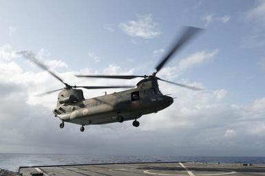 | Keywords: USS Germantown operations 141111-N-UD469-080.jpg en A CH-47 Chinook helicopter assigned to the Japanese Ground Self Defense Force JGSDF takes off from the flight deck of the amphibious dock landing ship USS Germantown LSD 42 following a personnel transfer for exercise Keen Sword Exercise Keen Sword is a bilateral field training exercise held biennially since 1986 The exercise is designed to increase the interoperability of U S Forces and the Japanese Self Defense Forces JSDF to effectively and mutually provide for the defense of Japan or respond to a regional crisis or contingency situation in the Asia-Pacific region Germantown is part of the Peleliu Amphibious Ready Group PELARG14 commanded by Capt Heidi Agle and is conducting joint forces exercises in the U S 7th Fleet area of responsibility U S Navy Photo by Mass Communication Specialist 2nd Class Amanda R Gray/Released 2014-11-11 Petty Officer 2nd Class Amanda Gray https //www dvidshub net/image/1658663 141111-N-UD469-080 2014-11-14 22 18 BUCKNER BAY OKINAWA JP PD-USGov-Military-Navy Kawasaki CH-47 USS Germantown LSD-42 Images from DoD uploaded by Fæ |