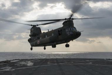 Keywords: USS Germantown operations 141112-N-UD469-011.jpg en A CH-47 Chinook assigned to the Japanese Ground Self Defense Force JGSDF takes off from the flight deck of the amphibious dock landing ship USS Germantown LSD 42 during a personnel transfer for exercise Keen Sword Exercise Keen Sword is a bilateral field training exercise held biennially since 1986 The exercise is designed to increase the interoperability of U S Forces and the Japanese Self Defense Forces JSDF to effectively and mutually provide for the defense of Japan or respond to a regional crisis or contingency situation in the Asia-Pacific region Germantown is part of the Peleliu Amphibious Ready Group PELARG14 commanded by Capt Heidi Agle and is conducting joint forces exercises in the U S 7th Fleet area of responsibility U S Navy Photo by Mass Communication Specialist 2nd Class Amanda R Gray/Released 2014-11-11 Petty Officer 2nd Class Amanda Gray https //www dvidshub net/image/1658839 141112-N-UD469-011 2014-11-15 02 44 PHILIPPINE SEA PD-USGov-Military-Navy Kawasaki CH-47 USS Germantown LSD-42 Images from DoD uploaded by Fæ
