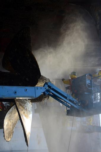 | Keywords: USS Green Bay Hull 131030-N-BB534-127.jpg en General Dynamics National Steel and Shipbuilding Company NASSCO shipyard workers power wash the port propeller of amphibious transport dock ship USS Green Bay LPD 20 Green Bay is conducting a regularly scheduled dry dock period U S Navy photo by Mass Communication Specialist 1st Class Elizabeth Merriam/Released 2013-11-04 Petty Officer 2nd Class Elizabeth Merriam https //www dvidshub net/image/1046577 131030-N-BB534-127 2013-11-04 17 58 SAN DIEGO CA US PD-USGov-Military-Navy USS Green Bay LPD-20 Images from DoD uploaded by Fæ |