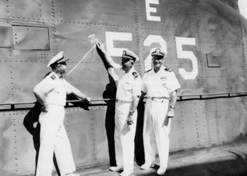 | Keywords: USS Grenadier (SS 525).jpg en 090529-N-0000X-060 KEY WEST Fl - In this undated file photo Lt Cmdr Ted Davis center marks a Z on the sail of the Tench-class diesel submarine USS Grenadier SS 525 as Commander Submarine Squadron 12 Capt Fritz Harlfinger lef and Commander Submarine Division 122 Cmdr Brez Betzel look on Davis was able to claim the mock Z after tracking a Soviet Zulu-class submarine for more than 18 hours leading to the first documented evidence that the Soviet Union was conducting submarine operations in the Atlantic Ocean The event was an intelligence coup for the U S military U S Navy photo/Released http //www navy mil/view_image asp id 72150 U S Navy photo/Released undated History of Key West Florida Images by Alaniaris/PD uploads PD-USGov-Military-Navy USS Grenadier SS-525 |