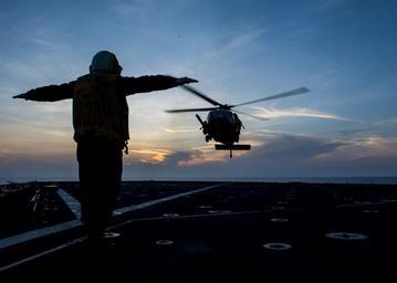 | Keywords: USS Gunston Hall 140430-N-XJ695-032.jpg en U S Navy Boatswain's Mate 2nd Class Scott Hitter directs an Air Force HH-60G Pave Hawk helicopter during deck landing qualifications on the flight deck of the dock landing ship USS Gunston Hall in the Gulf of Aden April 30 2014 The Gunston Hall deployed as part of the Bataan Amphibious Ready Group with the embarked 22nd Marine Expeditionary Unit in support of maritime security operations and theater security cooperation efforts in the U S 5th Fleet area of responsibility 2014-04-30 LSD 44 https //www dvidshub net/image/1312999 140430-N-XJ695-032 2014-05-03 10 03 USS GUNSTON HALL LSD 44 AT SEA PD-USGov-Military-Navy USS Gunston Hall LSD-44 22nd Marine Expeditionary Unit Images from DoD uploaded by Fæ |