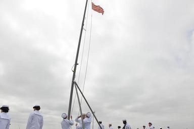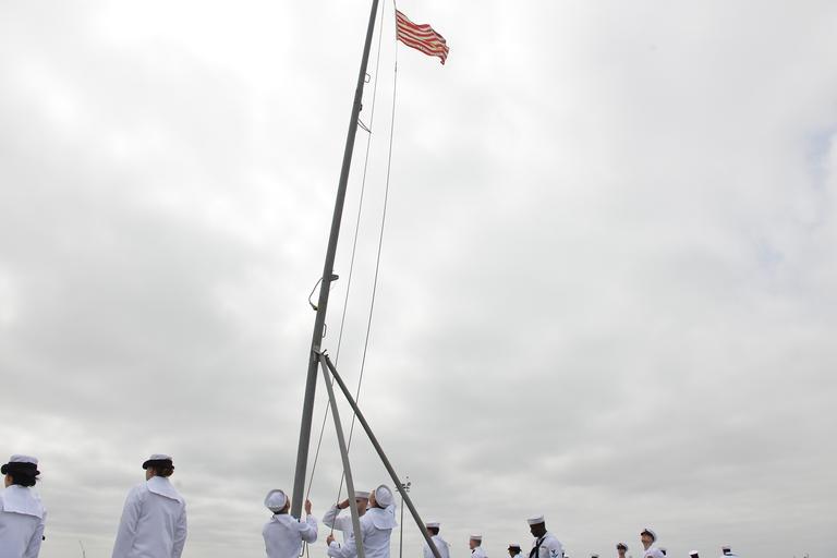| Keywords: USS Harry S. Truman returns from deployment 140418-N-CC806-125.jpg en Sailors raise the Navy jack on the bow of the aircraft carrier USS Harry S Truman as the ship returns to home port at Naval Station Norfolk after completing a nine-month deployment to the U S 5th and 6th Fleet areas of responsibility 2014-04-18 CVN 75 https //www dvidshub net/image/1259005 140418-N-CC806-125 2014-04-18 18 55 NORFOLK VA US PD-USGov-Military-Navy Naval Station Norfolk USS Harry S Truman CVN-75 Images from DoD uploaded by Fæ |