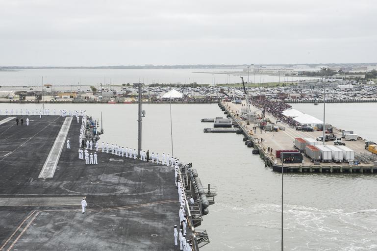 | Keywords: USS Harry S. Truman homecoming 140418-N-RY581-158.jpg en Sailors and Marines man the rails of the aircraft carrier USS Harry S Truman as the ship returns to home port at Naval Station Norfolk after completing a nine-month deployment to the U S 5th and 6th Fleet areas of responsibility 2014-04-18 CVN 75 https //www dvidshub net/image/1259014 140418-N-RY581-158 2014-04-18 19 01 NORFOLK VA US PD-USGov-Military-Navy Naval Station Norfolk USS Harry S Truman CVN-75 Images from DoD uploaded by Fæ |