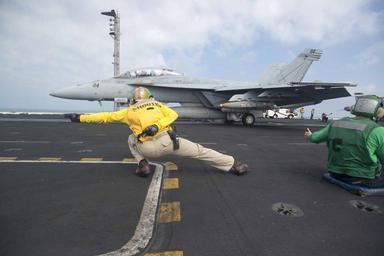 | Keywords: USS Harry S. Truman conducts flight operations. (10328619063).jpg GULF OF OMAN Oct 16 2013 Lt Cmdr Michael Winter signals an F/A-18F Super Hornet assigned to the Swordsmen of Strike Fighter Squadron 32 to launch from the flight deck of the aircraft carrier USS Harry S Truman CVN 75 Harry S Truman flagship for the Harry S Truman Carrier Strike Group is deployed to the U S 5th Fleet area of responsibility conducting maritime security operations supporting theater security cooperation efforts and supporting Operation Enduring Freedom U S Navy photo by Mass Communication Specialist 2nd Class Lyle H Wilkie III/Released 131016-N-GR168-072 Join the conversation http //www navy mil/viewGallery asp www navy mil/viewGallery asp http //www facebook com/USNavy www facebook com/USNavy http //www twitter com/USNavy www twitter com/USNavy http //navylive dodlive mil navylive dodlive mil http //pinterest com pinterest com https //plus google com plus google com http //www flickr com/photos/usnavy/10328619063/ USS Harry S Truman conducts flight operations 2013-10-16 05 28 http //www flickr com/people/56594044 N06 Official U S Navy Page from United States of America MC2 Lyle H Wilkie III/U S Navy U S Navy photo PD-USGov-Military-Navy Official U S Navy Imagery http //flickr com/photos/56594044 N06/10328619063 2014-04-03 13 29 19 cc-by-2 0 Files uploaded by Russavia Files uploaded by Russavia F/A-18F Super Hornet on flight decks F/A-18 Hornet aircraft carrier launches USS Harry S Truman CVN-75 flight deck |