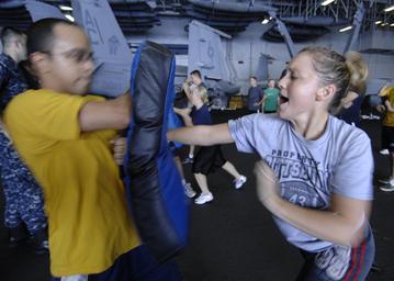 | Keywords: USS Harry Truman activity DVIDS205022.jpg en Petty Officer 3rd Class Laurie Kaczmarik from Bristol Tenn assigned to the engineering department aboard the aircraft carrier USS Harry S Truman participates in a shipboard reactionary force-basic course Harry S Truman is underway participating in Joint Task Force Exercise The exercise is designed to test and evaluate the ship's ability to react to multiple wartime scenarios and is the final certification for a strike group preparing to deploy 2009-09-16 Kilho Park https //www dvidshub net/image/205022 090916-N-+++++-298 2009-09-19 01 43 USS HARRY S TRUMAN PD-USGov-Military-Navy USS Harry S Truman CVN-75 Images from DoD uploaded by Fæ |