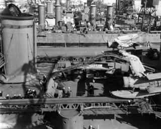| Keywords: USS Indianapolis-overhaul in April 1942.jpg The U S Navy cruiser USS Indianapolis CA-35 being overhauled in April 1942 Closeup view of her well deck area from the port side at the Mare Island Navy Yard 19 April 1942 following overhaul Note her forward smokestack catapults and Curtiss SOC Seagull aircraft USS Raleigh CL-7 is in the background Official U S Navy photograph http //www history navy mil/photos/sh-usn/usnsh-i/ca35-c htm 19-N-29299 1942-04 USN Photograph from the Bureau of Ships Collection in the U S National Archives Removed caption read Photo 19-N-29299 USS Indianapolis view amidships 19 April 1942 PD-USGov-Military-Navy USS Indianapolis CA-35 USS Raleigh CL-7 SOC Seagull floatplane Mare Island Naval Shipyard Catapults ship |